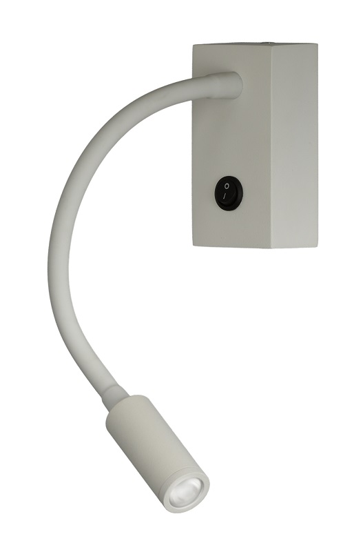 Aplique de pared led con lector. Normalmente utilizado como lector o luz de cama, instalándolo al lado del cabecero de la cama o el cualquier sitio que necesite luz focalizada. Es un equipo de led de 3 w.  Un producto muy practico y funcional.